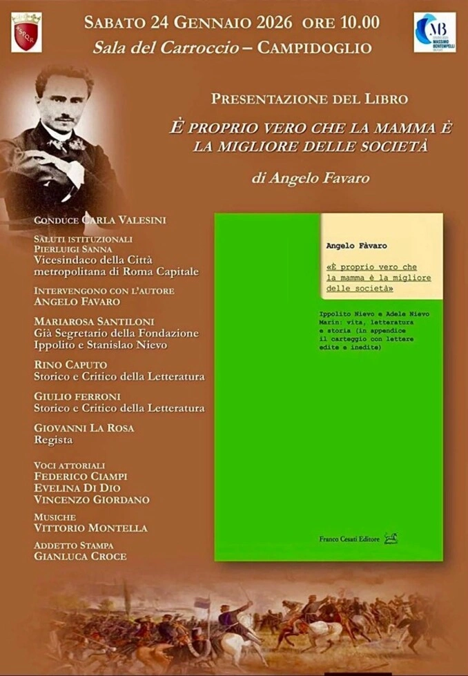 L’incontro al Campidoglio, sapientemente condotto da Carla Valesini, arricchito dalle letture sceniche e dalle musiche originali, ha mostrato come il libro di Favaro non sia destinato solo agli specialisti o ai “nievisti”, ma a chiunque voglia interrogarsi sul rapporto tra affetti e cittadinanza, tra educazione sentimentale e costruzione dell’identità collettiva.