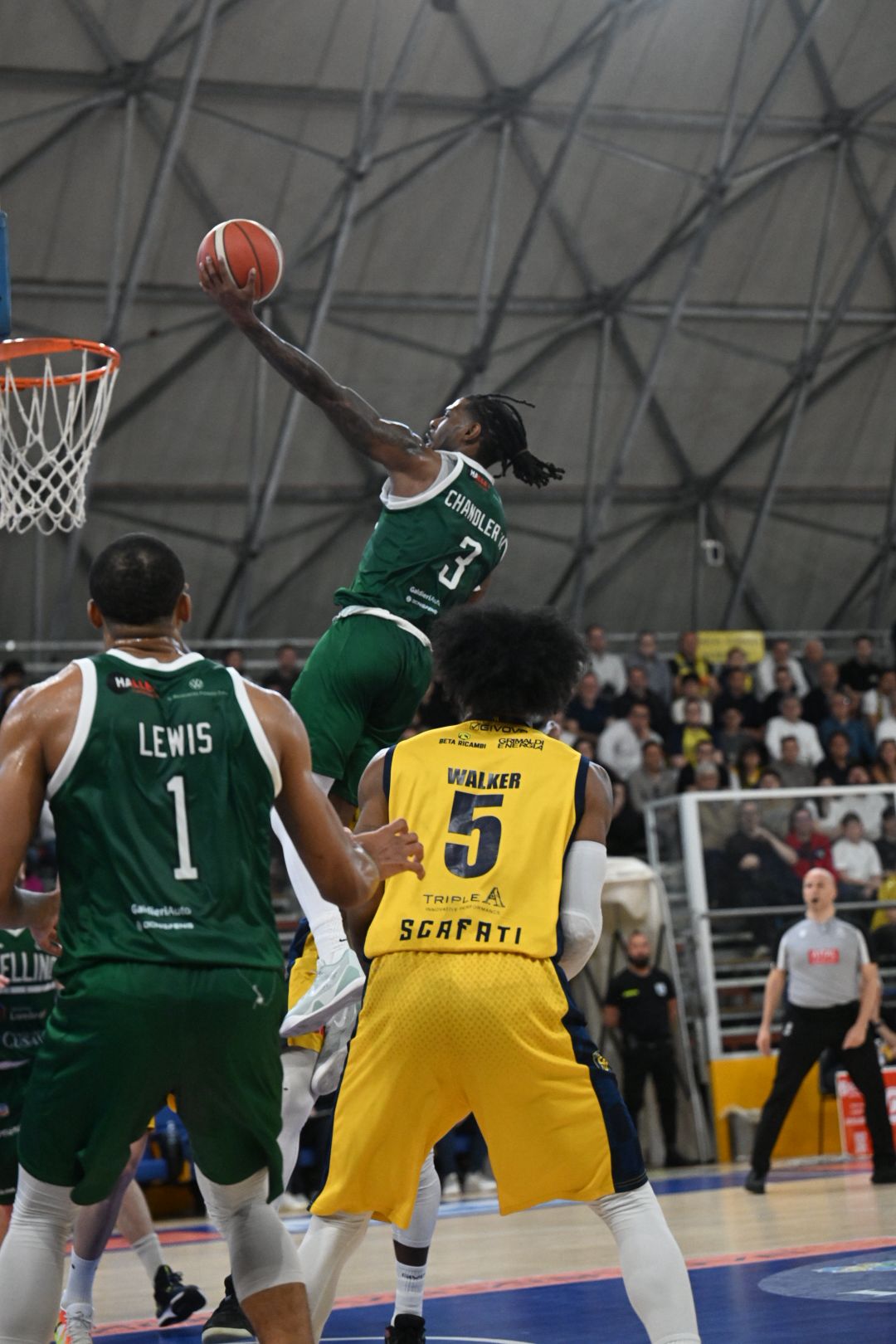 Gli ultimi dieci minuti Avellino gioca con grande ardore e tenacia tornado anche sul -13 (74-61), ma il quinto fallo sanzionato a Chandler toglie dalla partita un altro esterno a coach Gennaro Di Carlo, che termina la gara con Jurkatamm e Fresno in quintetto. La gara scivola via con Scafati in gestione, fissando il punteggio finale sul 93-71.