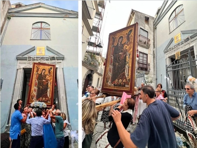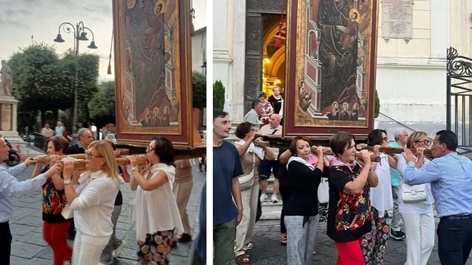 Successivamente, il quadro è stato riaccompagnato alla cappella di partenza, segnando il ritorno alla “chiesa nuova”. A seguire, in Via Marchese Ippolito, si è celebrata la Santa Messa, vero culmine spirituale della giornata. La grande partecipazione dei fedeli ha testimoniato il valore profondo che questa ricorrenza continua a rivestire per la comunità, attraversando generazioni e rinnovando ogni anno il senso di appartenenza.