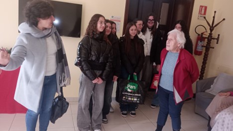 Un 21 dicembre 2025 da ricordare per Francesca, Clarissa, Asia, Giulia, Carlotta Chloe, Elena che hanno scelto di donare la loro quarta domenica d’Avvento alle nonne del Calicantus Residence di Limatola. Accolte da Massimiliamo Marotta, direttore della casa di accoglienza, e dalla dolcissima signora Antonietta, abbiamo consumato insieme alle giovanissime e sprintose e divertenti nonnine una mattinata ricca di saggezza sorridente. Domande, risate…canti…natalizi e non, come scrive il Direttore su un post di Fb, ‘ l’emozione ha superato ogni parola’.