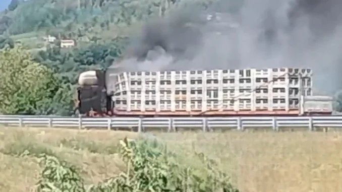 AVELLINO – In fiamme un Tir carico di pomodori all’uscita dell’autostrada. Traffico in Tilt