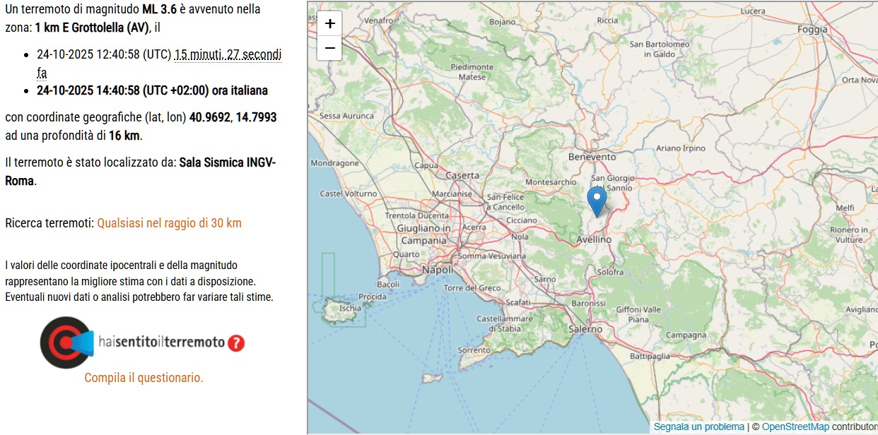 Si precisa, inoltre che non esiste alcun collegamento con l’attività bradisismica dei Campi Flegrei e che si tratta invece di un evento sismico legato alle dinamiche di faglie regionali dell’Appennino movimento senza alcuna matrice di origine vulcanica”.