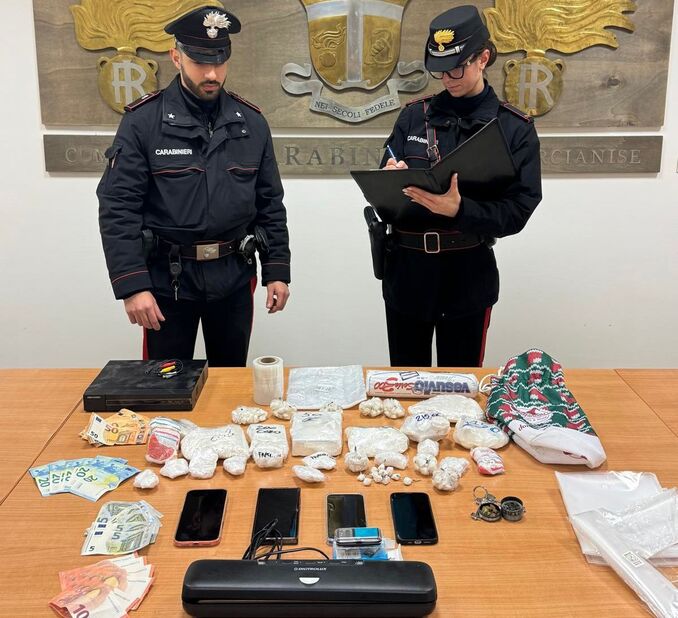 Durante una perquisizione personale e domiciliare eseguita a Orta di Atella, il fiuto del cane antidroga ha permesso di rinvenire oltre 2,7 chilogrammi di sostanze stupefacenti, tra cocaina e crack, materiale per il confezionamento, bilancini di precisione e 545 euro in contanti, ritenuti provento dell’attività illecita. Il valore commerciale della droga sequestrata è stimato in circa 300.000 euro.