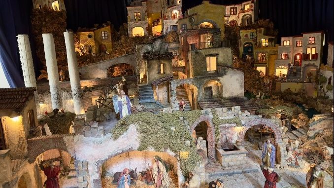 Nella Chiesa di Santa Maria a Pozzuoli, la comunità parrocchiale celebra un evento unico nel suo genere: un presepe che, per la prima volta, unisce la tradizione presepiale napoletana all’eredità archeologica dell’Antica Roma, grazie alla straordinaria riproduzione del Tempio di Serapide, realizzata interamente a mano dai fedeli Antonio, Alessandro, Rodolfo e Carlo.