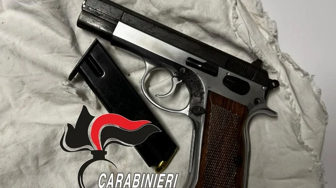 I Carabinieri pattugliano le strada quando un portone spalancato con la luce accesa cattura la loro attenzione. Entrano, non c’è nessuno. Controllano anche il seminterrato e qui, all’interno di un mattone forato, una pistola con matricola abrasa e 7 proiettili.