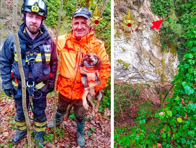 I Vigili del Fuoco, utilizzando tecniche SAF (Speleo Alpino Fluviali), si sono calati lungo la parete rocciosa e sono riusciti a raggiungere e recuperare l’animale in sicurezza. Il cane è stato successivamente riconsegnato al proprietario in buone condizioni.