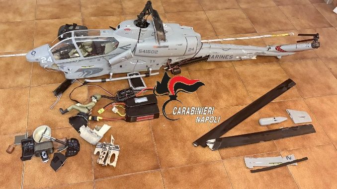 Ieri sera a Ischia i carabinieri della stazione di Casamicciola Terme hanno denunciato un 58enne del posto. Poco prima l’uomo aveva pericolosamente innalzato e messo in volo sul centro abitato un elicottero telecomandato lungo 1 metro e 70 dal peso di 8 chili.