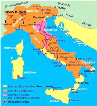 Tra il 535 e il 553 l’Italia venne invasa dall’esercito romano-orientale (o bizantino dall’antico nome della capitale dell’Impero romano d’Oriente, Bisanzio) condotto dal generale Belisario. Belisario nel 536 occupò Napoli e l’intera Campania. La Napoli della Magna Grecia finì così nelle mani dei greci di Bisanzio, mentre la Benevento Sannita si ritrovò a capo, come vedremo, di un ducato longobardo. Idem Capua: anche lei, dopo aver diviso per cent’anni il potere con Napoli, divenne capitale di un potente ducato guerrafondaio alleato di Benevento.