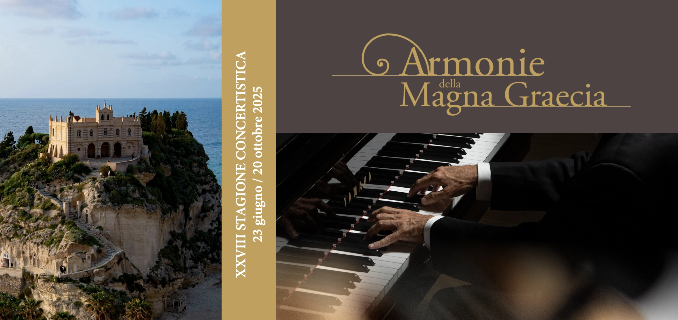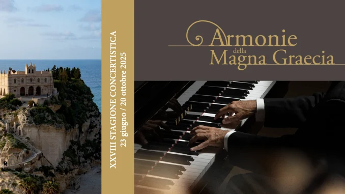 La XXVIII edizione del Festival “Armonie della Magna Graecia” si è conclusa lunedì 20 ottobre 2025 alle 21:00 nel suggestivo Palazzo Santa Chiara a Tropea con un concerto di chiusura incentrato su un raffinato programma pianistico a quattro mani, eseguito dal duo Alberto Cucino e Ida Visconti. Il repertorio comprendeva le “Bilder aus Osten” di Schumann, le “Marce Militari” di Schubert e le “Danze Slave” di Dvořák, offrendo al pubblico un’esperienza musicale intensa e coinvolgente.