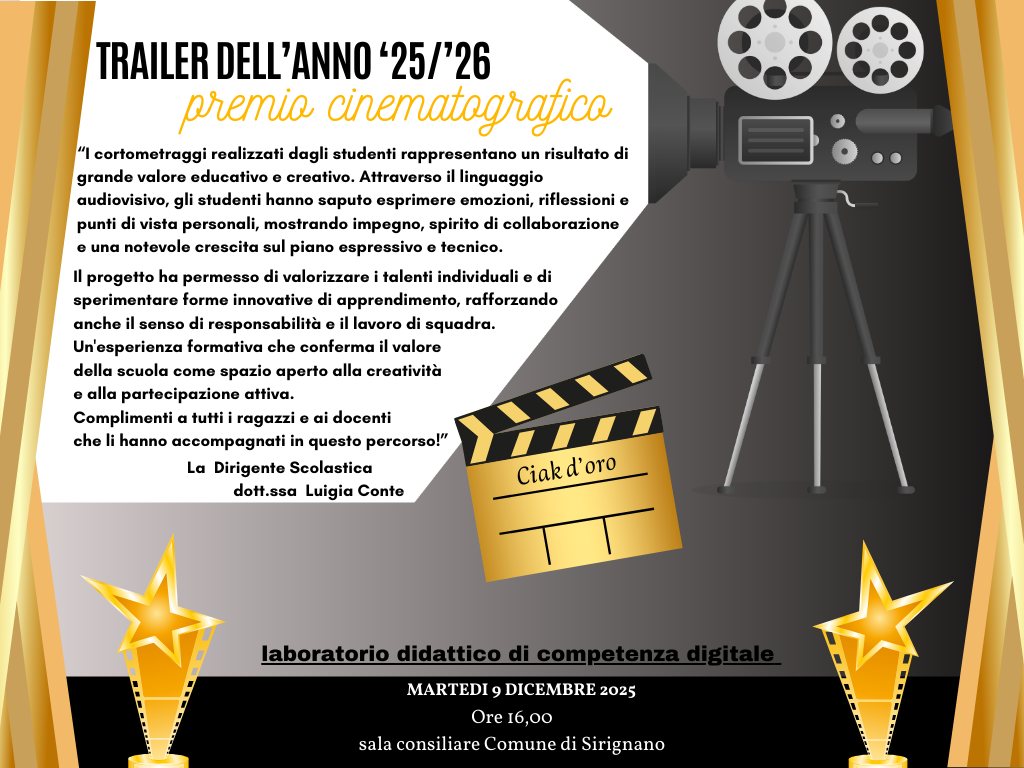 Per celebrare l’impegno degli studenti, l’Istituto ha organizzato una premiazione in stile cinematografico, affidando il giudizio a una giuria neutrale composta dalla dirigente Luigia Conte, dalla collaboratrice Prof.ssa Passalacqua, dal DSGA Giovanni Scotti con il supporto del personale di segreteria, e da due figure esterne di rilievo nel panorama audiovisivo: Mauro Ielardi, cineoperatore Sky, e Christian Candela, youtuber e collaboratore di Webboh. La proiezione dei trailer, ospitata il 9 dicembre nella sala consiliare del Comune di Sirignano, si è conclusa con l’assegnazione del simbolico “Oscar del Manzoni” al gruppo classe più votato, trasformando l’evento in un momento di festa e riconoscimento collettivo.