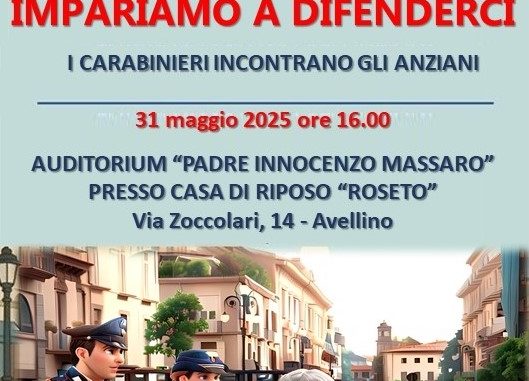 Il Comando Provinciale dei Carabinieri di Avellino e la Diocesi di Avellino, in collaborazione con la Casa Albergo – RSA “Roseto” e l’A.S.L. di Avellino, promuovono l’iniziativa “Impariamo a difenderci – I Carabinieri incontrano gli anziani”.