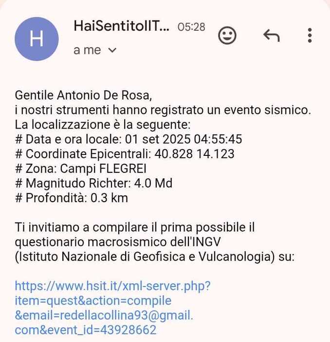 I letti hanno tremato, i vetri hanno vibrato, e in pochi secondi la quiete si è trasformata in allarme. La scossa, breve ma intensa, ha lasciato dietro di sé un’eco di paura e domande sospese. Secondo i dati dell’Istituto Nazionale di Geofisica e Vulcanologia, si è trattato di un evento significativo: una magnitudo di 4.0 con un ipocentro estremamente superficiale, a meno di un chilometro di profondità, stimato intorno ai 300 metri.