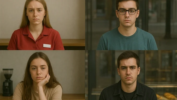 In questo contesto lo sguardo vuoto diventa simbolo di un disagio più ampio. Non è solo l’apatia di fronte al cliente o la mancanza di entusiasmo nell’interazione, ma la manifestazione esteriore di una condizione interiore di incertezza. Molti giovani si sentono relegati in ruoli che non hanno scelto, lavori percepiti come provvisori ma che finiscono col definirli. Il bancone di un bar, la cassa di un fast food, il banco di un negozio diventano il palcoscenico di un’esistenza sospesa, dove la quotidianità non riflette i sogni coltivati durante l’infanzia o le aspettative alimentate da un’educazione che ha promesso possibilità infinite senza fornire strumenti adeguati per realizzarle.