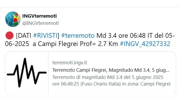 Alle 19:31 di oggi, 6 giugno 2025, è stata registrata una scossa di magnitudo preliminare [… continua a leggere]