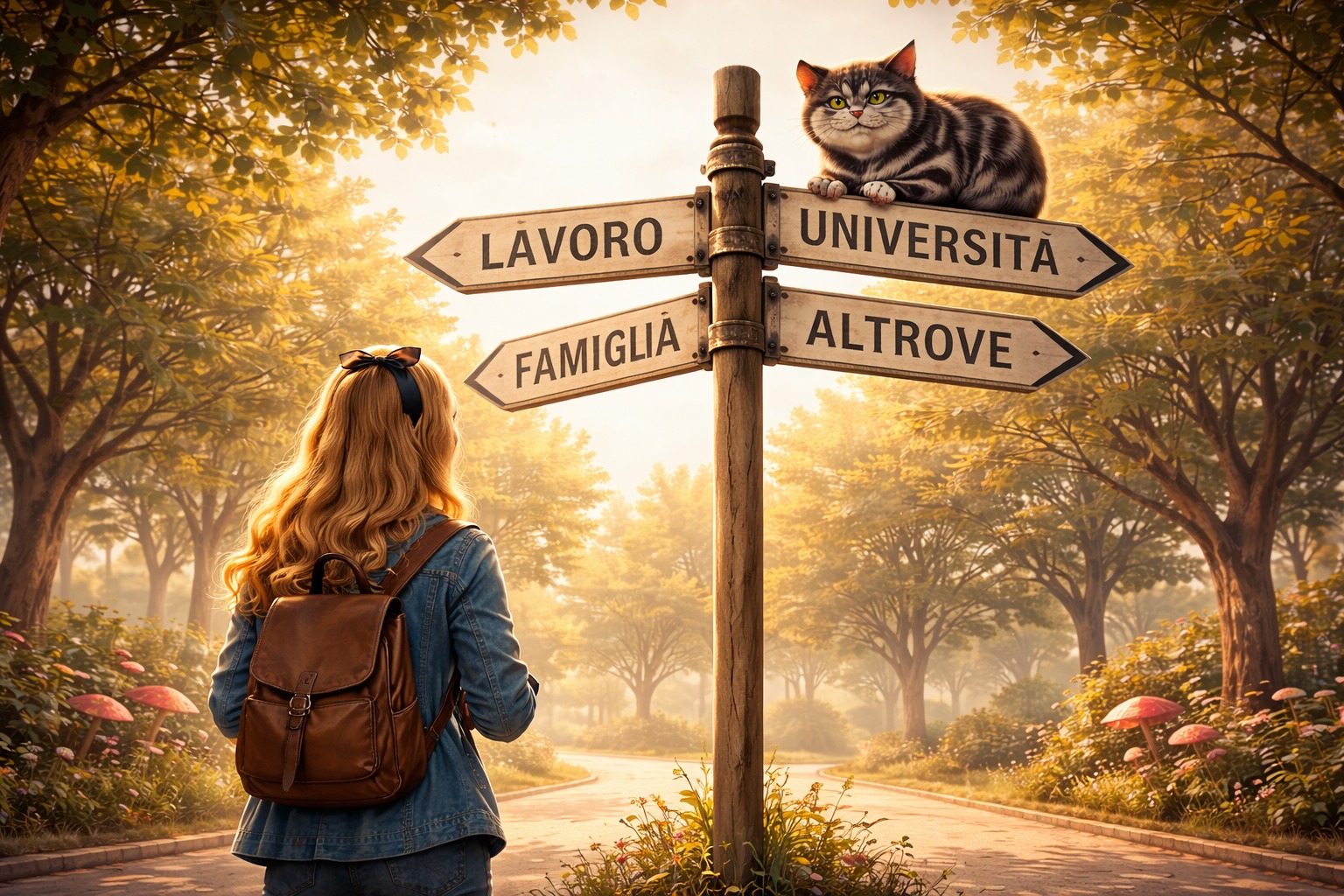Forse, per molti studenti e laureati di oggi, il passaggio cruciale non è scegliere subito una destinazione definitiva, ma imparare a tollerare il tempo della domanda, senza riempirlo automaticamente di tappe preconfezionate. Alice, dopotutto, è persa, ma è curiosa. Ed è questa curiosità — più che l’idea di una strada giusta — che le permette di attraversare il Paese delle Meraviglie senza smarrirsi del tutto.